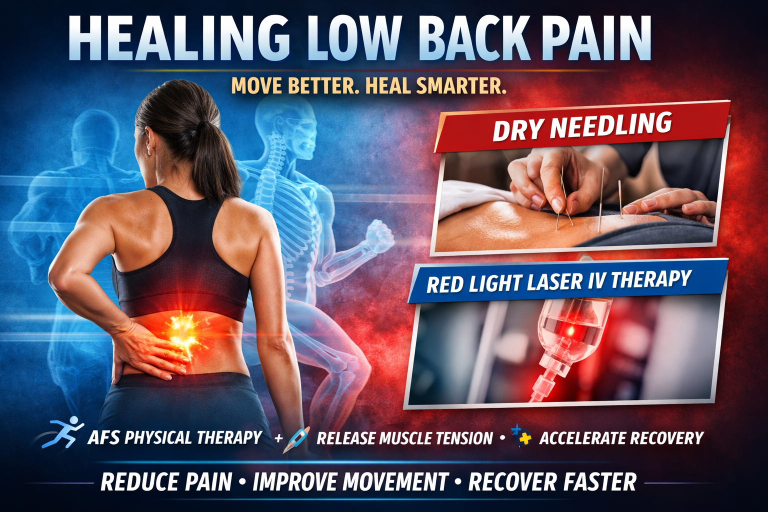 The key to long-term low back pain relief is not passive treatment alone—and AFS makes that clear. Dry Needling and Class IV Red Light Laser therapy are most effective when used intentionally to support active, functional rehabilitation.