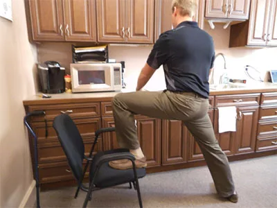 1. Place one foot on chair pointing forward